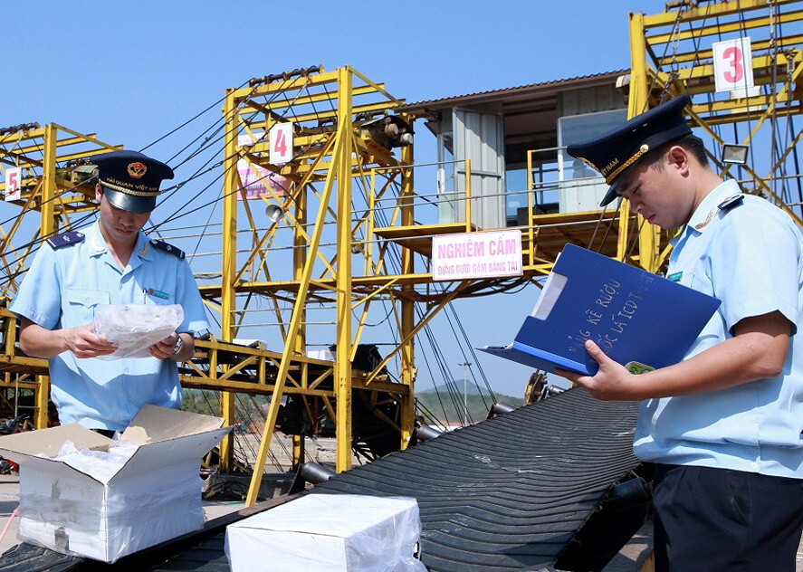 | Cán bộ Chi cục Hải quan Móng Cái kiểm tra hàng hóa tại Cảng ICD Thành Đạt (11-2017). Ảnh: Vi Thu (CTV) |