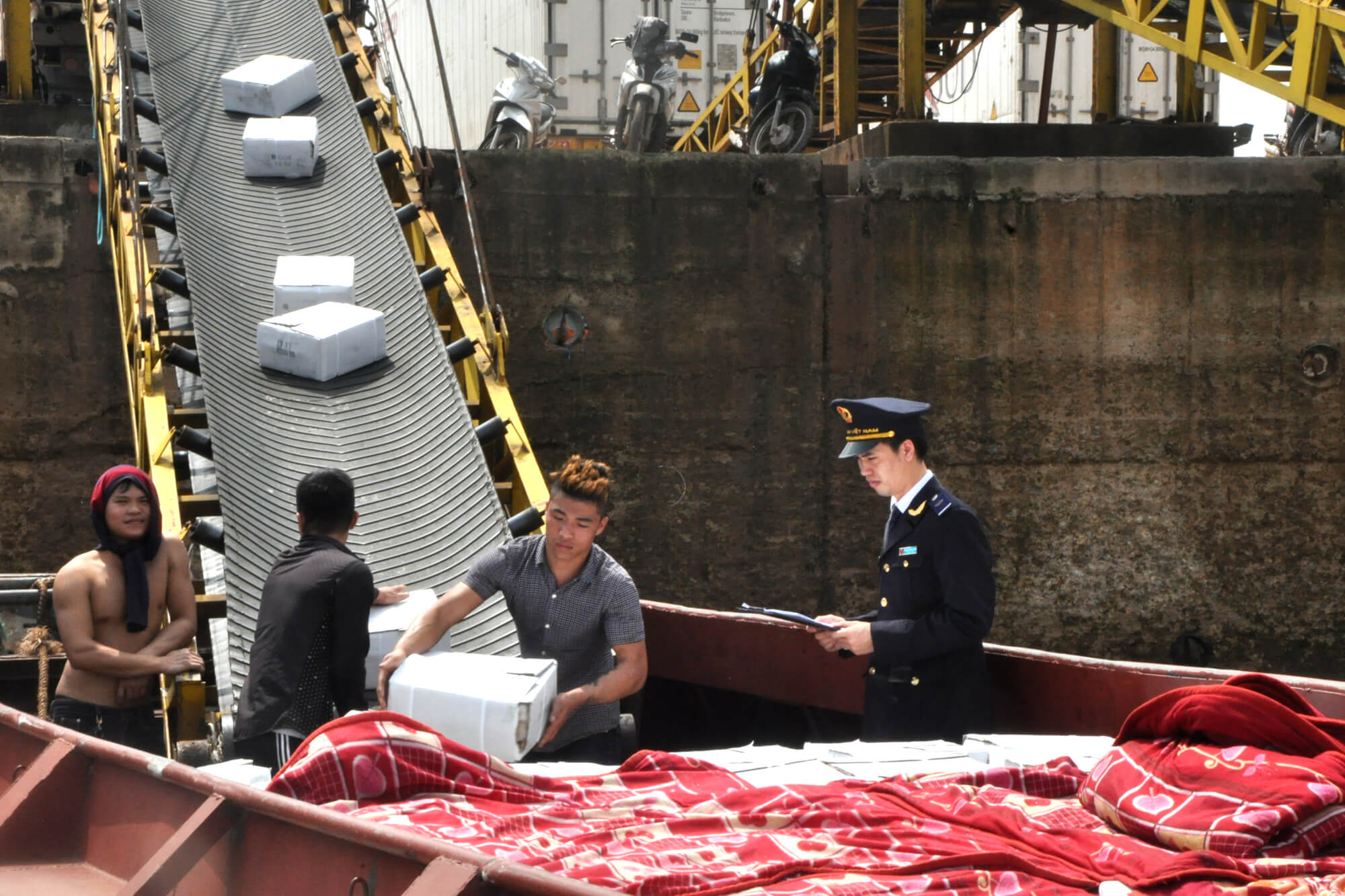 | Cán bộ Chi cục Hải quan Cửa khẩu Móng Cái kiểm tra hoạt động xuất khẩu tại Cảng ICD Thành Đạt. Ảnh: Hữu Việt |